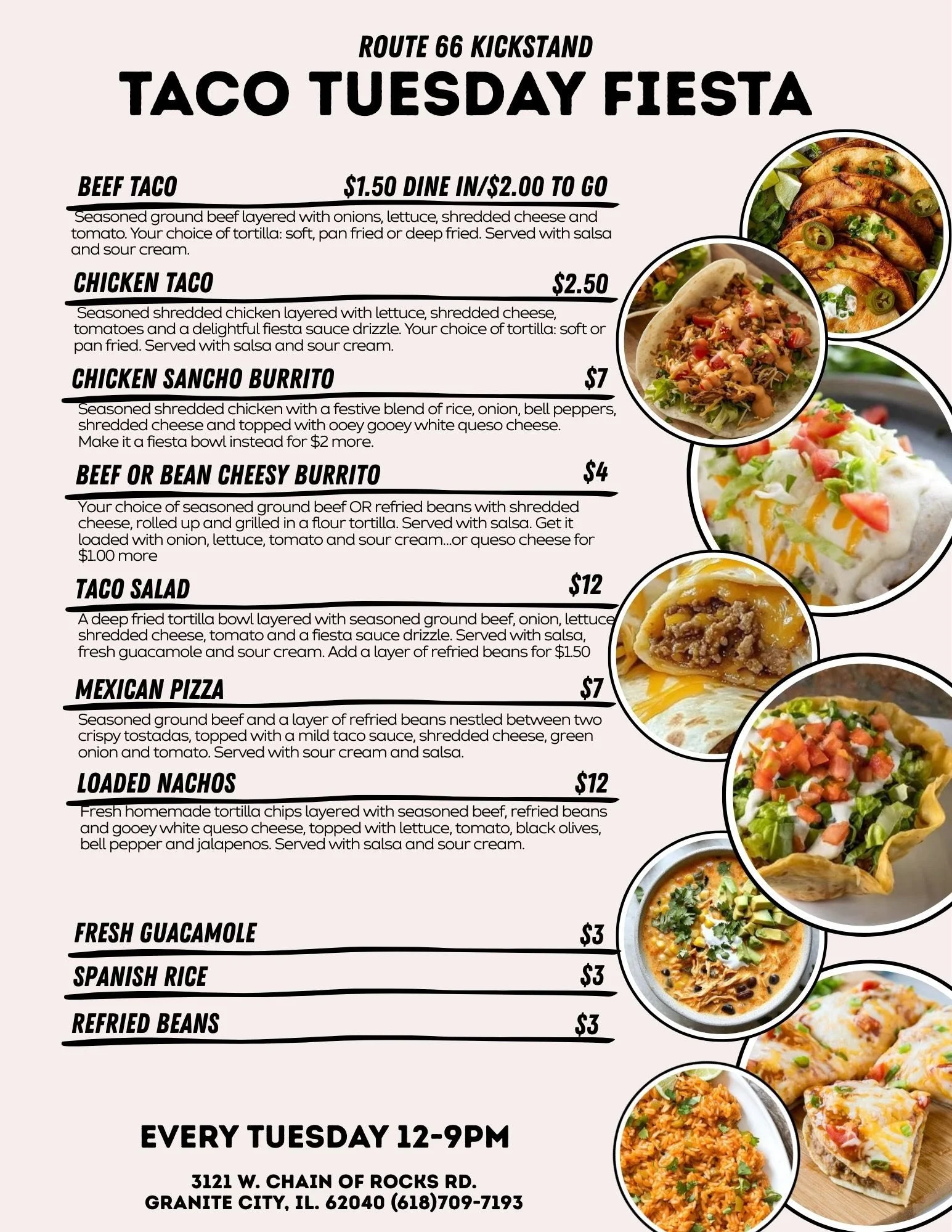 Featuring a complete specialty menu just for Tuesdays, our Fiesta has all our favorite Ameri-Mex dishes.